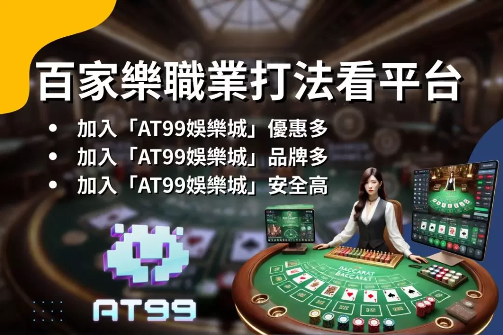 百家樂職業打法不僅只是心態、實戰教學告訴你,這些老玩家還要告訴你平台的差異,平台的差異會因為優惠、返水、品牌多樣化等等影響到你賺錢的高低,這也是要選擇好平台的主要原因,至於要選擇哪間平台呢?多數網友推薦「AT99娛樂城」這間品牌,至於原因也是比較簡單來說明,以下三點都可以證明加入「AT99娛樂城」你不會後悔甚至可以賺得比原本還要多!