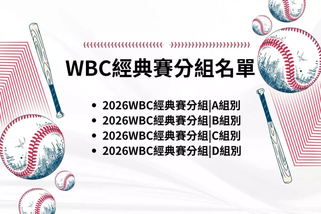2026WBC經典賽分組一共會有四個組別,這邊每個組別共五組,一共會有20的隊伍進行賽事,每個組別都會在各自的地區進行賽事,除此外來看看以下完整2026WBC經典賽分組名單。